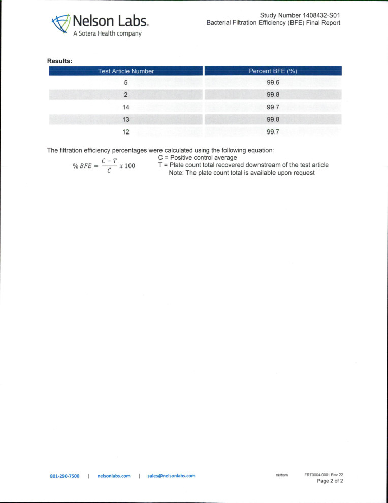 NELSON BFE99检测报告