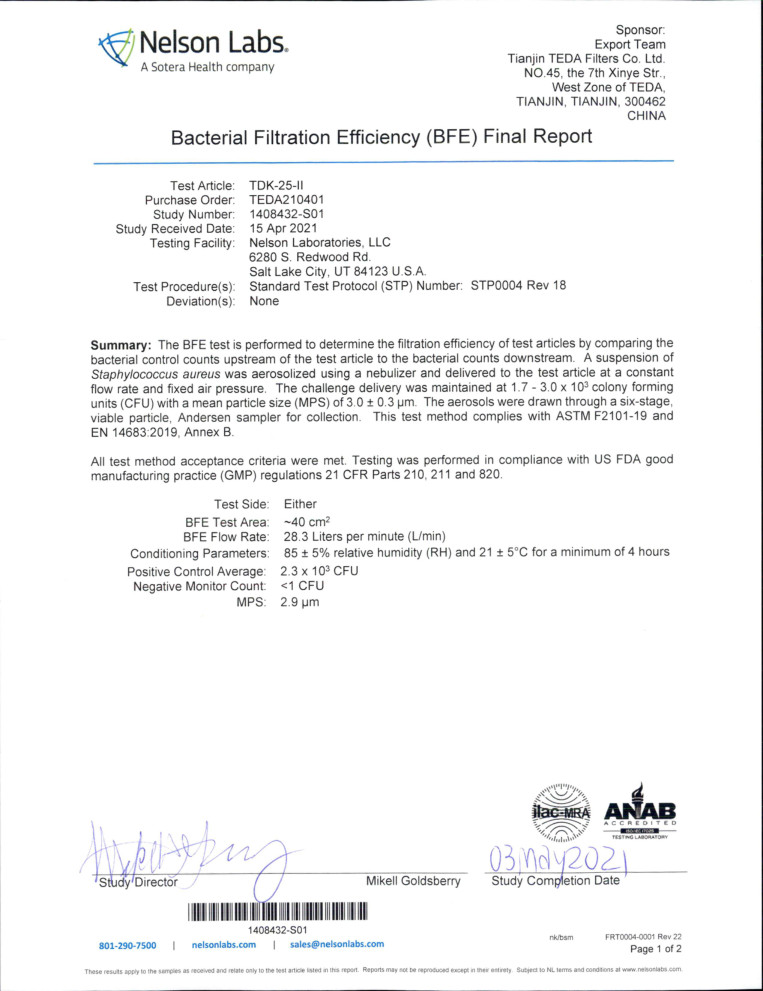 NELSON BFE99检测报告
